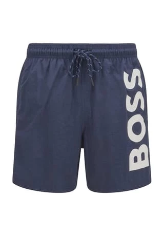 Stylische Badeboxer von der Marke BOSS mit integriertem Mesheinsatz und Logoprint am Bein. Bequemes, schnell trocknendes Material, Popeline-Webstruktur.