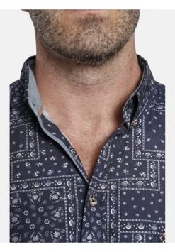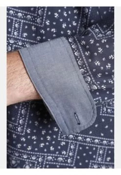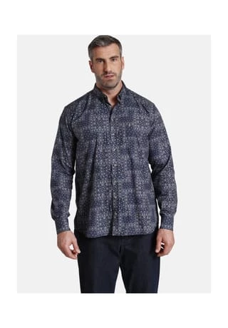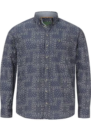 Charles Colby bietet britischen Chic für Herrenmode in großen Größen. Das Hemd DUKE LARRY wurde von der Natur inspiriert. Der Allover-Druck zeigt Streublumen und Paisley-Motive. Der Button-Down-Kragen und die Knöpfe in Hornoptik verleihen eine rustikale Note. Eine Brusttasche mit Logostick. Schöne Akzente setzt der Chambray-Stoff an der Innenseite der Manschetten und am Kragensteg. Die Knopfleiste und der Ärmelschlitz sind im selben Stoff eingefasst. Ob Waldspaziergang oder entspannter Restaurantbesuch, das Hemd lässt Sie immer gut aussehen. 100% Baumwolle. Maschinenwäsche.