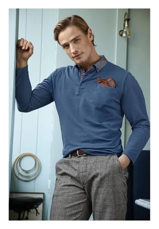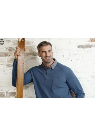Charles Colby bietet britischen Chic für Herrenmode in großen Größen. Das Charles Colby Langarm-Poloshirt Duke BRENNAN verbindet dekorative Designelemente mit einer entspannten Passform. So erhalten Sie ein modisches Freizeithemd, das sich durch seine luftige Pikeequalität und Seitenschlitze angenehm trägt. Der aufgesetzte Button-Down-Kragen aus Chambray mit verziertem Untertritt stellt Ihren Sinn für Mode unter Beweis. 100% Baumwolle. Maschinenwäsche.