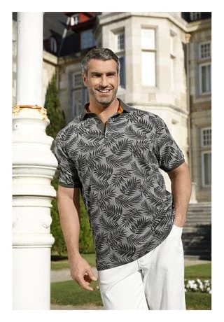 Charles Colby bietet britischen Chic für Herrenmode in großen Größen. Als Abenteurer sind Sie mit Poloshirt Earl Angus bestens für die City Safari ausgerüstet. Luftiges two-tone Pikee liegt zusammen mit dem Blätterdruck mitten im Trend. Kragen und Bündchen sind unifarben. Kragensteg und Seitenschlitze sind mit farblichem Akzent ausgekleidet. Ein kombinierfreundliches Poloshirt für das Frühjahr. 100% Baumwolle. Maschinenwäsche.