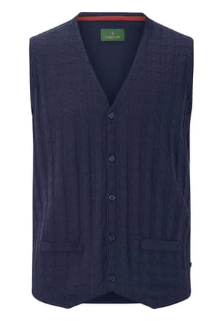 Charles Colby bietet britischen Chic für Herrenmode in großen Größen. Polieren Sie Ihre Alltagsgarderobe mit Weste Duke Ryan auf. Hahnentritt ist ein Muster, das in der Mode eine lange Tradition pflegt. Charles Colby macht sich dieses ursprünglich aus Schottland stammende Muster für diese Herrenweste zu Eigen. Der weiche Strick trägt sich angenehm leicht und bietet Bewegungsfreiheit. Ein spitz zulaufender Saum und zwei Ziertaschen runden den Look ab. Eine Weste, die alle Outfits zu etwas besonderem macht.50% Baumwolle, 50% Polyacryl. Maschinenwäsche.
