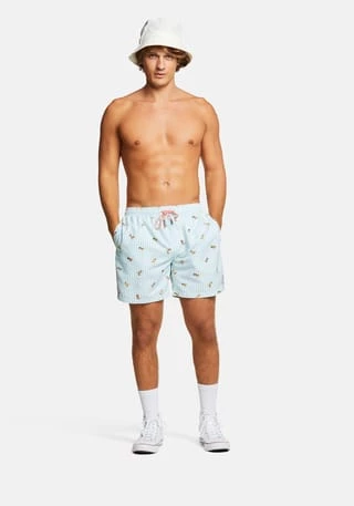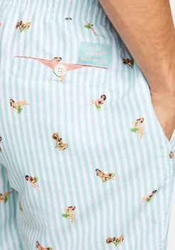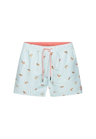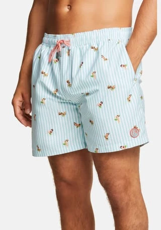 Unsere trendige Badeshorts ins sommerlichen Mustern. Mit Farbverlauf in pastelligen Tönen. Das Futter ist mit unserem &-Logo bedruckt. Über der Tasche hinten findest du eins unserer neuen labels. Auch die Ösen sind markengetreu bedurckt. Die Badeshorts hat eine farblich abgestimmte Kordel und einen Gummizug im Bund.