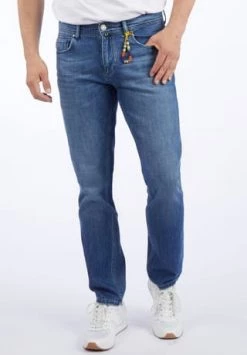 Besonders und cool präsentiert sich diese Slim-fit-Jeans von Daniel Hechter! Ihre langen Beine machen die Jeans perfekt für den Frühling. Mit ihrer lässigen Used-Optik und dem unifarbenen Design wird die Jeans zum perfekten Kombi-Partner für ausgefallene Muster und kräftige Farben. An den Gürtelschlaufen sorgt ein BEada-Armband für ein sommerliches Detail. Auf Grund ihrer bequemen Baumwollmischung ist diese Jeans sehr weich. Der Stretch-Anteil im Material macht sie zusätzlich bequem und bietet Ihnen optimale Bewegungsfreiheit. 4-Pockets vervollständigen das Design. Für einen legeren Auftritt kombinieren Sie die Slim-fit-Jeans sportiv zu Shirt und Sneakern. Modell: DAH-26090-121363