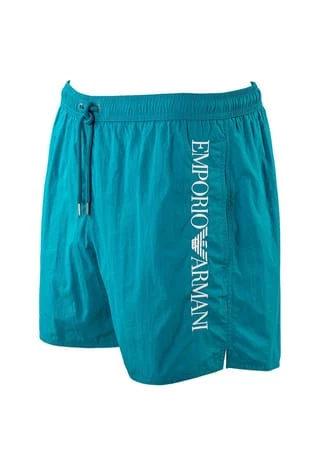 Herren Badeshorts von der Marke EMPORIO ARMANI. Shorts mit eingenähtem Mesh-Slip und seitlichen Einstecktaschen. Markentypisches Logo auf der Vorderseite.