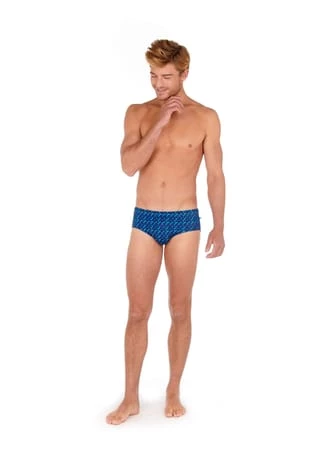 WAVES ist eine sehr erfrischende Serie von Bademoden aus der Fashion-Kollektion SUMMER 2022. Dieser Herren-Badeslip aus Lycra überzeugt durch seine schöne „Swimmingpool“-Ästhetik.