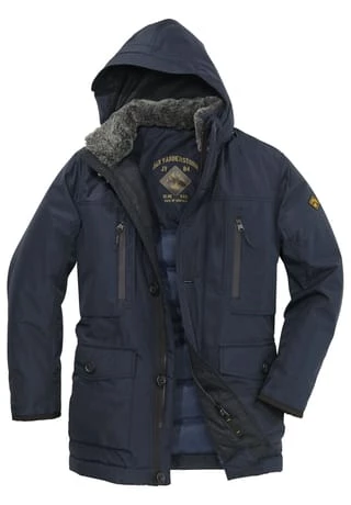 JAN VANDERSTORM ist Ihr Experte für Herrenmode in großen Größen. Funktionsjacke BOTULFR bietet alles was man sich von einer Funktionsjacke wünscht: atmungsaktiv, wasser- und windabweisend! Abnehmbare Kapuze, innen mit Fleece. Am Kragen abnehmbarer Kunstpelz. Durch die glatte Außenseite und die klassische Steppoptik innen bietet die Jacke bestes Warmhaltevermögen. Verdeckter Reißverschluss mit Knopfleiste, innen mit Fleece. Zwei Brusttaschen mit Reißverschluss, zwei Taschen mit Knöpfen zu schließen und seitlichen Eingrifftaschen. Innen großzügig wattiert. Eine Innentasche und Tunnelzug zur Taillierung. Oberstoff 100% Polyester. Futter 100% Polyester.