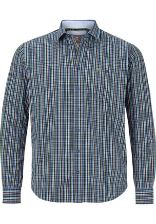 JAN VANDERSTORM ist Ihr Experte für Herrenmode in großen Größen. Das trageangenehme Hemd LATHAM überzeugt mit modischem Karodesign in den neuesten Trendfarben. Das Karomuster ist aus reiner Baumwolle gewebt. Das macht den Stoff besonders fließend. Modische Akzente setzen der Innensteg mit Kontrastbesatz und die Ärmelaufschläge in der gleichen Farbe. Kombiniert mit Jeans oder Cargohosen entsteht sofort ein smartes Outfit. Die kleine JV Logo Stickerei setzt das dezente Highlight. 100% Baumwolle. Maschinenwäsche.