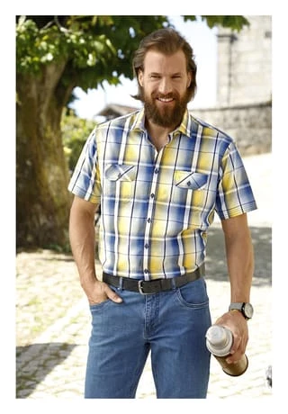 JAN VANDERSTORM ist Ihr Experte für Herrenmode in großen Größen. Kurzarmhemd JARLE macht glücklich, denn der auffällige Kontrast strahlt pure Lebensfreude aus. Das große Karomuster ist ein Blickfang und lässt Sie Zentrum jeder Party werden. Mit dem angenehmen Baumwollmaterial ist JARLE perfekt für warme Temperaturen, dabei laden die mit leichten Absteppungen verzierten Ärmel zum Krempeln ein. Die zwei Brusttaschen mit Patte und Knopf komplettieren den Look. 100% Baumwolle. Maschinenwäsche.