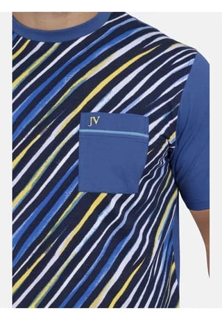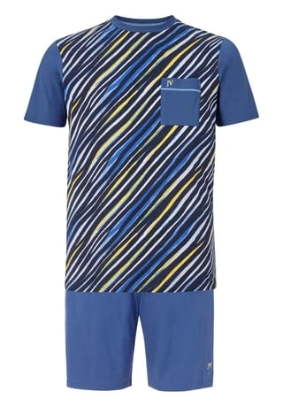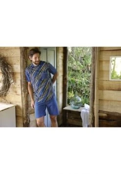 JAN VANDERSTORM ist Ihr Experte für Herrenmode in großen Größen. Machen Sie’s sich bequem und schlafen Sie gut! Der zweiteilige Schlafanzug TEUTOMAR mit T-Shirt und Shorts aus wunderbar angenehmer Baumwolle begleitet Sie dabei. T-Shirt mit lebhaften Diagonalstreifen vorne sowie unifarbenen blauen Akzenten am Rundhalsausschnitt, an der Brusttasche mit JV-Stickemblem und Kontrastpaspel, an den kurzen Ärmeln und am Rückenteil. Blaue Shorts mit Elastikbund und gesticktem JV-Monogramm am linken Beinsaum. Träumen Sie schon oder shoppen Sie noch? Wie auch immer: JAN VANDERSTORM wünscht Ihnen entspannte Momente! 100% Baumwolle. Maschinenwäsche.
