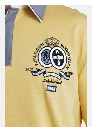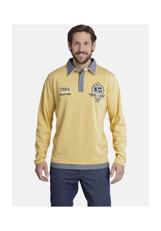 JAN VANDERSTORM ist Ihr Experte für Herren Mode in großen Größen. Sportlicher Rugbystil kombiniert mit modischem Lagenlook verleihen diesem Sweatshirt von Jan Vanderstorm eine spannende Optik. Der hochwertige verarbeitete Doppelkragen setzt tolle Akzente und das Saumdetail aus Hemdenstoff sorgt für einen effektvollen 2-in-1-Style. Blickfang sind die farbharmonischen Stickereien auf der Brust. Durch spezielle Veredelung erhält der Oberstoff einen leicht angerauten, dennoch weichen und voluminösen Griff. Diese Sweatshirt steht für Anziehen und Wohlfühlen.