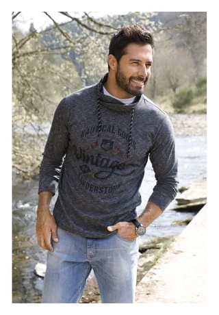 JAN VANDERSTORM ist Ihr Experte für Herrenmode in großen Größen. Mit Sweatshirt HAGEN in lässigem Melange kann man sich ruhig die steife Brise um die Nase wehen lassen. Der asymmetrische Kragen schließt hoch und das weiche Material trägt sich angenehm auf der Haut. Ein entspanntes Sweatshirt mit großem Print, das sich man vor allem in der Übergangszeit zu schätzen weiß. 70% Baumwolle, 30% Polyester. Maschinenwäsche.