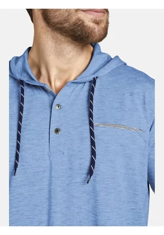 JAN VANDERSTORM ist Ihr Experte für Herrenmode in großen Größen. Lässiges Kapuzenshirt OFFE im sportlichen-casual Design. Die Kapuze verleiht diesem T-Shirt die extra Dosis Gelassenheit. Für moderne Akzente ist gesorgt: die maritim gestreifte Doppellagenoptik an Ärmeln, Saum und der Brusttasche. Passt zu entspannten und sportlichen Outfits. 70% Baumwolle, 30% Polyester. Maschinenwäsche.