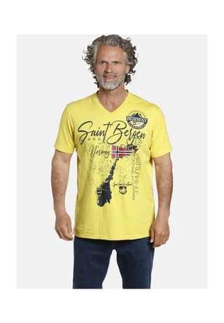 JAN VANDERSTORM ist Ihr Experte für Herrenmode in großen Größen. In der Natur stechen Sie mit T-Shirt OLOV heraus: in frischer Farbe macht dieses T-Shirt fröhlich. Mit stilvollem V-Ausschnitt und plakativem Print, ist OLOV mehr als ein normales T-Shirt. Zu kernigen Denim oder Shorts passt OLOV immer! 100% Baumwolle. Maschinenwäsche.