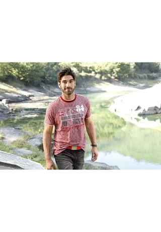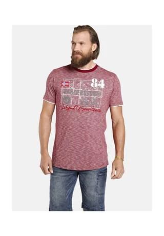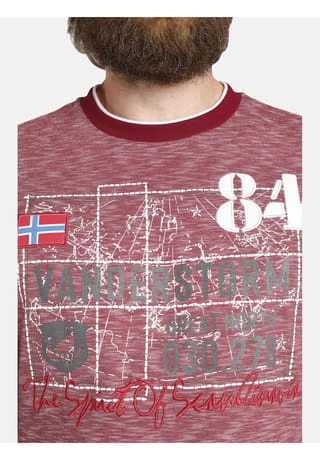 JAN VANDERSTORM ist Ihr Experte für Herrenmode in großen Größen. Auf zu neuen Abenteuern! Das T-Shirt THEIS in melange überzeugt mit sportlicher Doppellagen-Optik an Rundhalsausschnitt und Ärmeln und einem großflächigem Print und Applikationen im Zentrum. Der weiche Griff und die Seitenschlitze tragen zum angenehmen Tragekomfort bei. 50% Baumwolle, 50% Polyester. Maschinenwäsche.