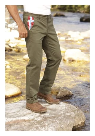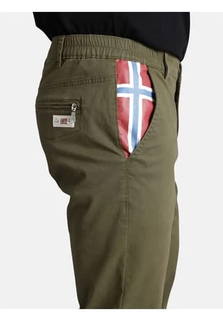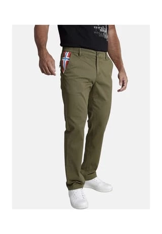 JAN VANDERSTORM ist Ihr Experte für Herrenmode in großen Größen. Olivgrün: Das verspricht Freizeit, Urlaub und Abenteuer. Mit der Tiefbundhose GOSBERT sind Sie frei, das alles zu erleben. Die seitlichen Elastikeinsätze am Bund machen gut und gern jede Ihrer Bewegungen mit. Durch Gürtelschlaufen, Knopf und Reißverschluss ist die exakte Passform gut gesichert. Und – ganz wichtig: Die norwegische Nationalflagge an der rechten Vordertasche stellt die Verbindung zur Kollektion von JAN VANDERSTORM ganz mühelos her! Sind Sie bereits Fan von JAN VANDERSTORM? Falls nicht: Es ist nie zu spät! 97% Baumwolle, 3% Elasthan. Maschinenwäsche. +FIT ARTIKEL: Bequemer Style aus unserer +Fit Kollektion. Mit unserem +Tiefbund Spezialschnitt sitzt diese Hose vorn bequem unter dem Bauch und verhindert durch ein höher geschnittenes Rückteil ein Herausrutschen des Oberteils. Unser +Kurzgröße Spezialschnitt verfügt über eine angepasste Bundweite bei steigender Konfektionsgröße. Die Leibhöhe und die Reißverschlussleiste sind verkürzt geschnitten und sorgen so für eine perfekte Passform für Männer mit kürzeren Beinen.