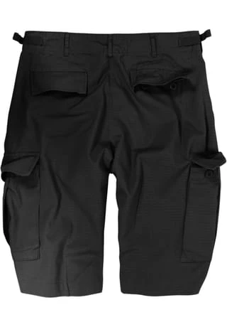 Diese hochwertigen Bermuda Shorts bestehen aus einem robusten Baumwollgewebe mit Ripstop-Struktur, sind äußerst strapazierfähig, trocknen leicht und verfügen über 6 Taschen. 2 mit Knöpfen verschließbare, aufgesetzte Beintaschen sowie 2 Gesäßtaschen bieten viel Raum für alltägliche Wertgegenstände. Gerade in den großen Beintaschen an den Seiten können Sie dank der Dehnfalten viele Kleinigkeiten unterbringen. Sämtliche Knopfleisten sind verdeckt, sodass kein Knopf aus Versehen irgendwo hängen bleibt und abreißt. Auch die zwei seitlichen Einschubtaschen fallen sehr geräumig aus. Die Hose verfügt über eine verdeckte Knopfleiste mit hinterlegtem Latz. Die Taillenweite ist individuell an den Seiten am Bund verstellbar, sodass garantiert jede Größe persönlich passend eingestellt werden kann. Die Bermuda Shorts sind solide vernäht und gehören für Outdoor-Begeisterte, Forstarbeiter oder Softair-Teams zum Sommer-Outfit. Details: • Zwei große, aufgesetzte Beintaschen mit verdeckter Doppelknopfleiste und Dehnfalten • Zwei seitliche Einschubtaschen • Zwei Gesäßtaschen mit verdeckter Doppelknopfleiste • Gürtelschlaufen Material: 65 % Polyester, 35 % Baumwolle