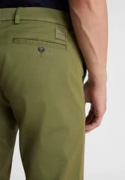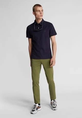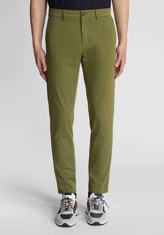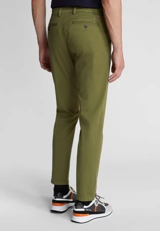 Slim-Fit-Chino-Hose aus zertifizierter Baumwoll-Gabardine. Gerades Bein mit Gürtelschlaufen am Bund und praktischen Taschen an den Seiten und hinten.