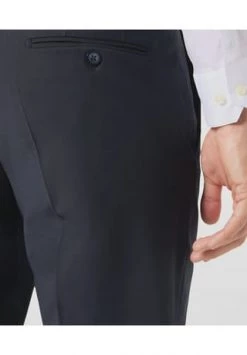 zwei seitliche Eingriff- und Paspeltaschen mit Knopf am Gesäß