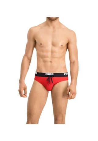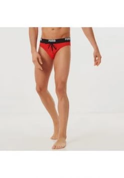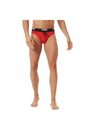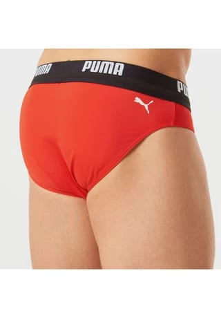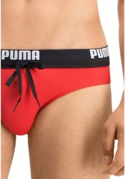 Stylischer Badeslip von der Marke PUMA. Einfarbiger Slip mit Logbund und Kordelzug. Chlorbeständig und mit UV-Schutz. Hergestellt aus recyceltem Nylon.