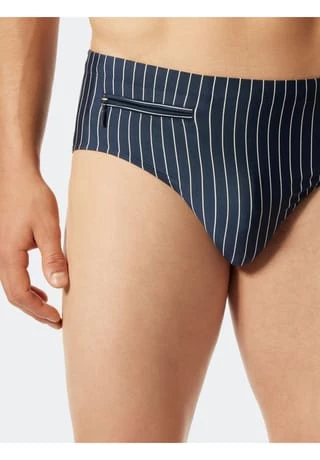Sportliche Badehose aus der SCHIESSER-Badekollektion Aqua „Nautical Casual“ mit innen liegender Bindekordel am Bund und extra-flacher, gebondeter Reißverschluss-Tasche zum Verstauen von Kleingeld oder einem Schlüssel. Der vordere Teil ist komplett unterfüttert und ein kleines Aqua-Logo aus silbermattem Metall ziert den Beinausschnitt. Hergestellt aus besonders formbeständiger, recycelter und komfortabler Wirkware.