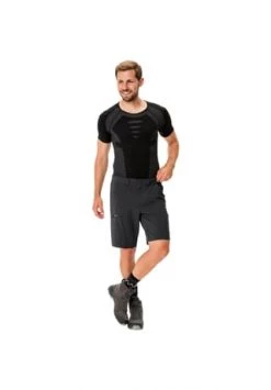 Elastische Bermuda mit hohem Tragekomfort; strapazierfähig und schnelltrocknend; teilelastischer Bund mit Gürtelschlaufen; Knopf- und Reißverschluss; 2 Seitentaschen; 1 Beintasche und 1 Gesäßtasche mit Reißverschluss; klimafreundliche Herstellung über ein Massenbilanzverfahren; mit Eco Finish umweltfreundlich wasserabweisend und PFC-frei hergestellt; Grüner Knopf; Green-Shape-Produkt; Material 89% Polyamid, 11% Elastan.